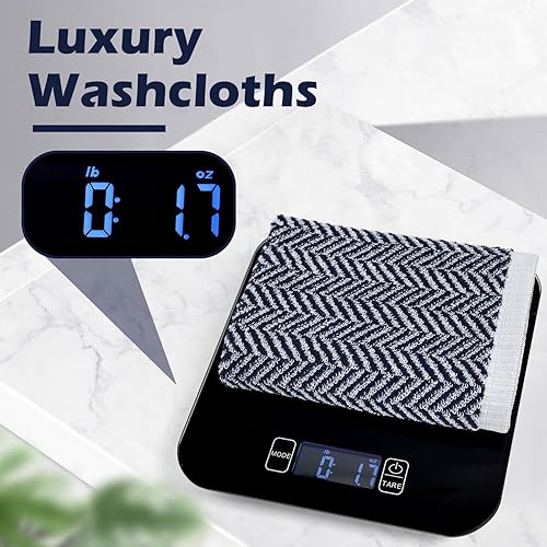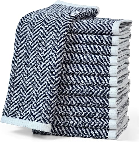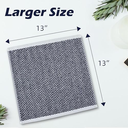 Elegant Herringbone Design: Featuring classic navy-blue and white herringbone stripes, these washcloths add a stylish touch to any bathroom décor, perfect for both your home and guest bathrooms