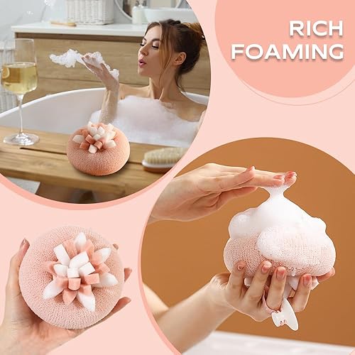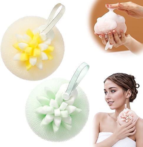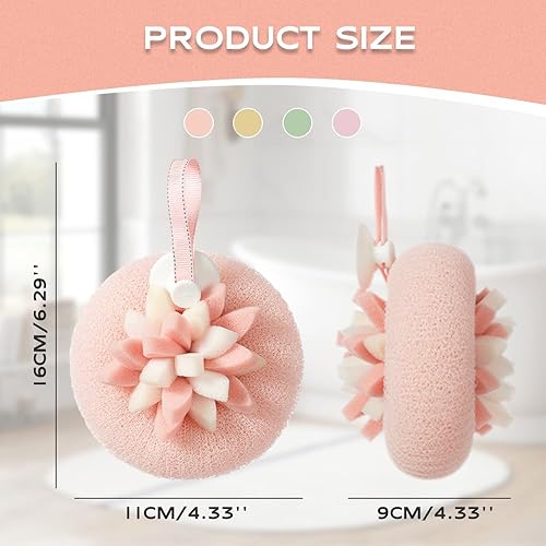 【2-in-1 Sunflower Bath Ball】Designed with a convenient ring handle, this bath sponge is easy to grip and control, allowing you to use it comfortably and efficiently in the shower.