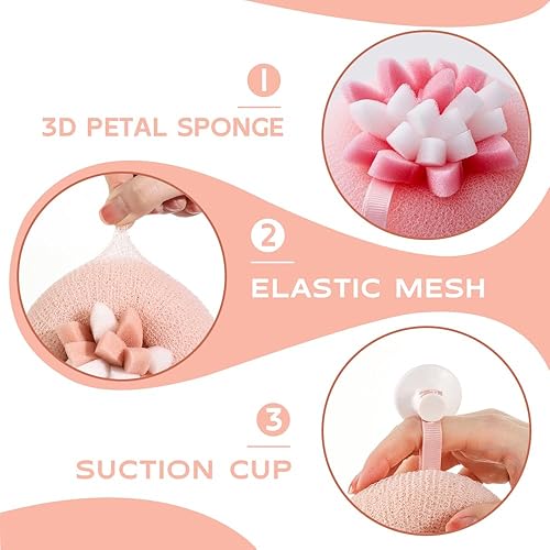 Sunflower Bath Sponge with Suction Cups - 2-Pack Pink(Pink+skin)
