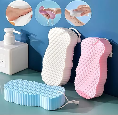 Super Soft 3D Body Shower Sponge - Blue Exfoliating Loofah(Pink)