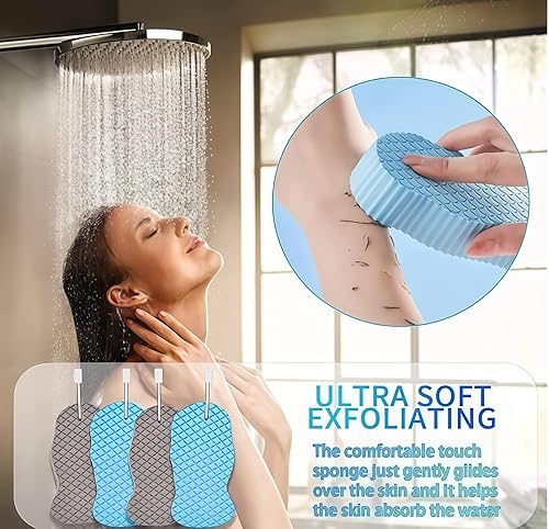 【Reusable & Durable】Made of soft PVA material, soft high-density sponge, easy to press, super absorbent, high toughness and resilience, no deformation after friction.Skin sponge becomes hard after drying, Soften after soaking in water. Our bath sponge comes with a hanging rope for easy drying , and can be reused indefinitely.