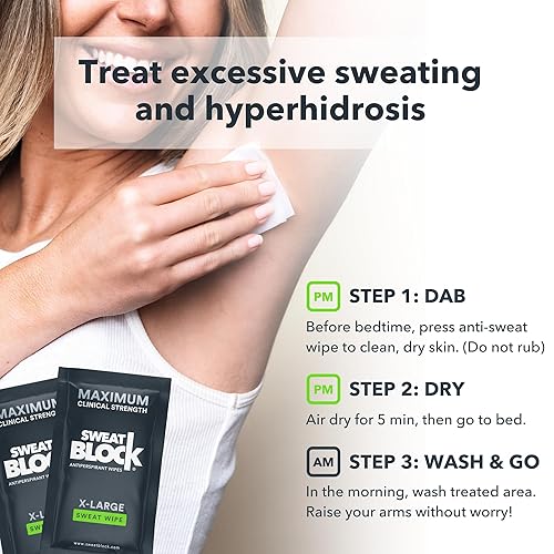STOP UNWANTED SWEAT: Perfect for stopping sweat on your pits, back, neck, hands, feet, and more—SweatBlock Body Wipes deliver powerful protection wherever sweat strikes. Each maximum clinical strength antiperspirant wipe uses a dermatologist-recommended formula to block body sweat at the source. Whether you’re managing daily sweat or extreme perspiration, these wipes help you stay dry, fresh, and comfortable all day and beyond. Apply at night, stay dry all day.