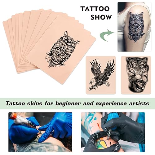 【Package and Size】 - Package include 5Pcs 7.4*5.6 inch Blank Tattoo Practice Skin and 15Pcs 11*8.5 inch Stencil Paper. The value combination suitable for beginners and experienced artists. Both sides of each tattoo skin are blank, providing enough space for your masterpiece creation.