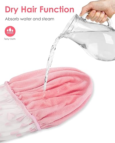Terry Cloth Shower Cap for Women - Reusable Waterproof(Pink)