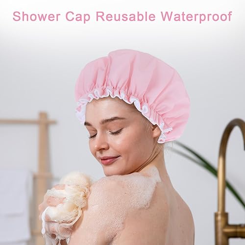 【Stylish & Practical Gift】Available in white and pink, these shower caps are both stylish and functional, making them a perfect gift for birthdays, holidays, Mother's Day, and Christmas. The large size and adjustable elastic band ensure a perfect fit for all hair lengths and styles, providing a thoughtful and practical gift for women of all ages.