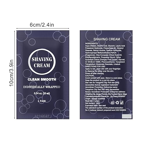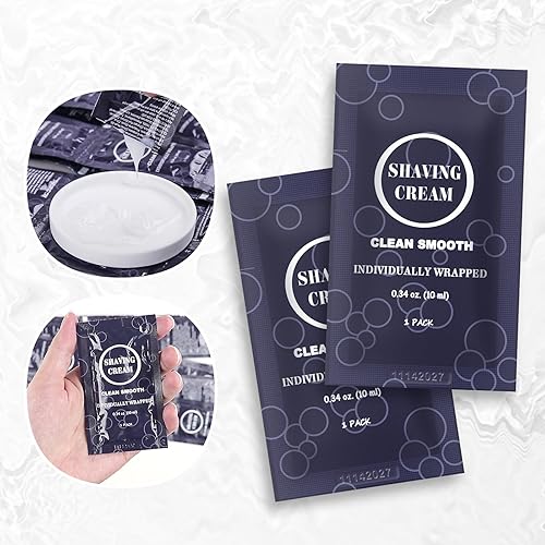 Package Content: You will receive 50 packs of individually wrapped shaving cream, bag size 10x6cm/3.9x2.4inch,Capacity: 0.34, oz easy to carry, sealed package design prevents leakage, enough quantity to meet your daily use needs