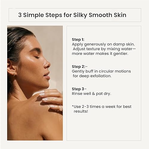 Exfoliating body scrub removes dull, dry skin to reveal glowing, soft, smooth skin.