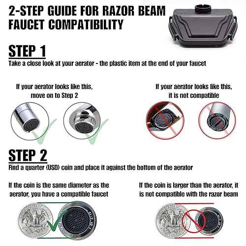 Compatible with most faucets: Even though it is compatible with the majority of faucets, please check the 2-step guide located in the listing photos to determine if the razor beam is compatible with your faucet.