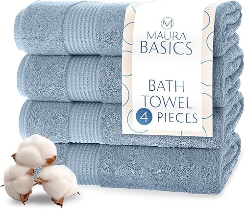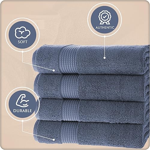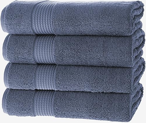 Turkish Cotton Washcloths Set with Hanging Loops(Denim Blue,Bath Towel (4-Pack))