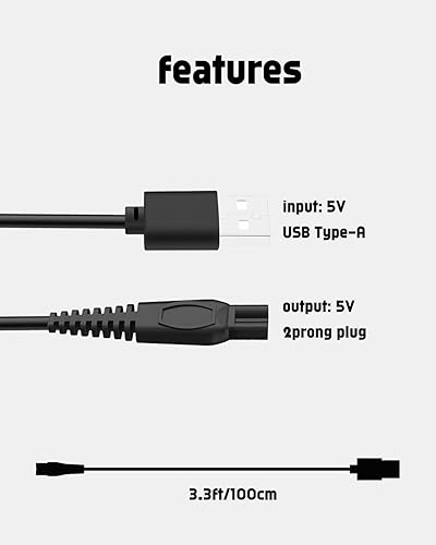 【Features】 Input: AC 5V USB Type-A; Output: DC 5V 1A 5W(max) 2 Prong Plug(NOT USB Type-C); Power cord length: 3.3ft/1m. with 1 cleaning brush