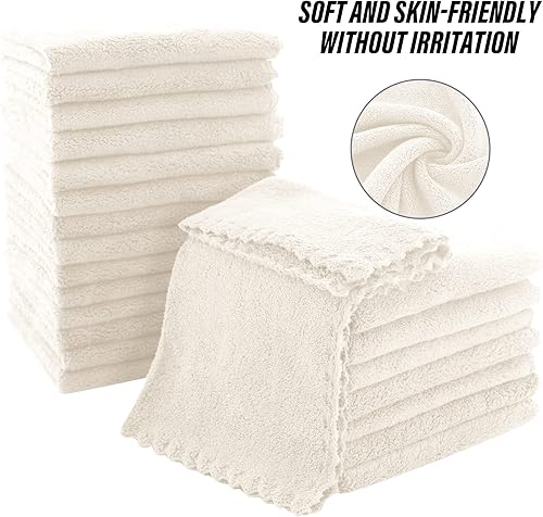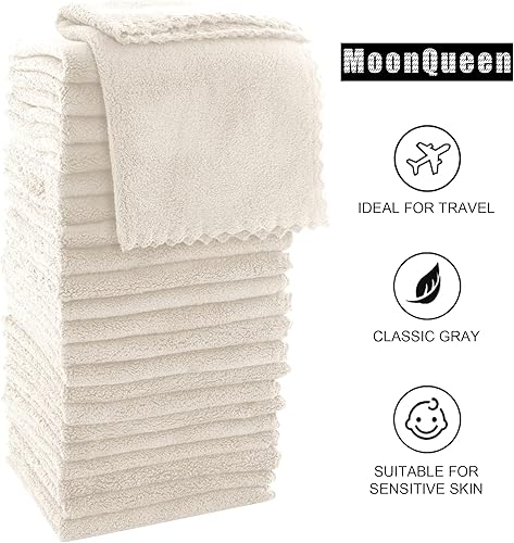 Ultra Soft Coral Velvet Washcloths, 24-Pack Grey(Cream,12 x 12 Inch(Pack of 24))