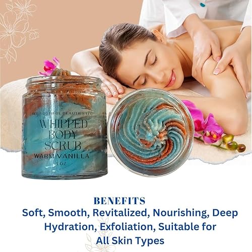NOURISHING WHIPPED TEXTURE: The unique whipped consistency of this body scrub adds a layer of richness to your skincare routine, providing deep moisturization and hydration. Crafted with care using natural ingredients, our sweet warm vanilla whipped body scrub includes skin-loving elements that contribute to a healthier and radiant complexion.