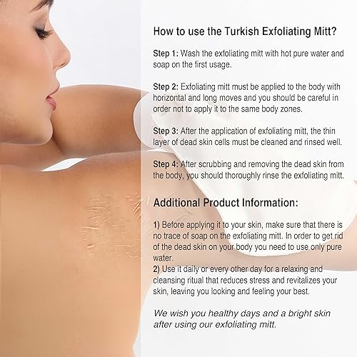 Spa Quality Skin Care: Crafted from premium organic materials, our hammam spa exfoliator kese mitt delivers a luxurious skincare experience. Use it daily for a relaxing and cleansing ritual that reduces stress and revitalizes your skin, leaving you looking and feeling your best.