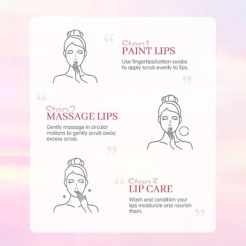 [USER-FRIENDLY]: For optimal results, apply the lip sugar scrub 2-3 times weekly over a duration of 4 weeks. This all-natural sugar lip scrub nourishes your lips for the overnight intensive treatment. By adding our natural lip scrub to your skincare routine, you can enjoy a luxurious spa experience right at home! You'll love the feeling of hydrated and pampered lips