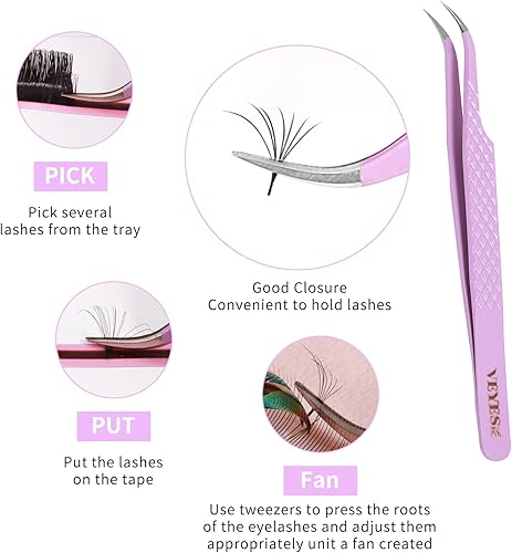 VEYES INC lash extension supplies, 3 high-precision tweezers for professional lash tech.