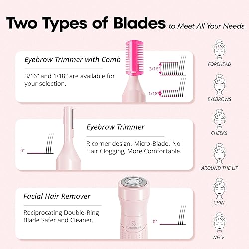 2 in 1 design - The face shaver head and the eyebrow trimmer head can be used interchangeably, Allow You to Use as the Facial Hair Shaver and womens eyebrow trimmer (USB Type-C Charging).