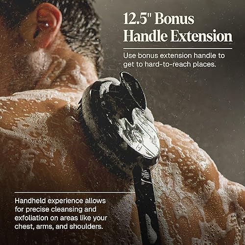 Full-Body Coverage with Bonus Handle Extension: Easily reach every part of your body with the 12.5-inch detachable handle, perfect for scrubbing your back, legs, and other hard-to-reach areas. Remove the handle for a handheld experience, allowing for precise cleansing and exfoliation on areas like your face, chest, arms, and shoulders.