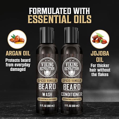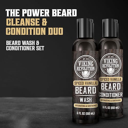 Viking Revolution Beard Wash & Conditioner Set - Spiced Vanilla(5 Fl Oz (Pack of 2))