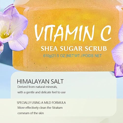 LUXURIOUS FORMULA: Vitamin C enriched sugar scrub with shea butter for gentle yet effective exfoliation and skin brightening.