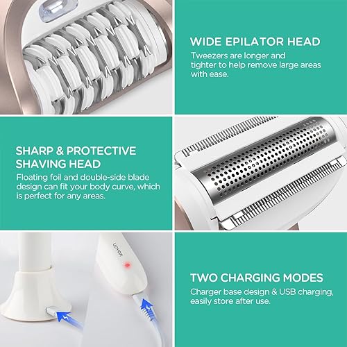 Multifunctional Hair Removal Kit: This hair remover includes 1 epilator head, 1 shaver head and 1 callus remover head, which turns the epilator into a fully versatile shaver and feet care tool. You can shave, trim, epilate and remove feet callous only with one device, convenient and easy!