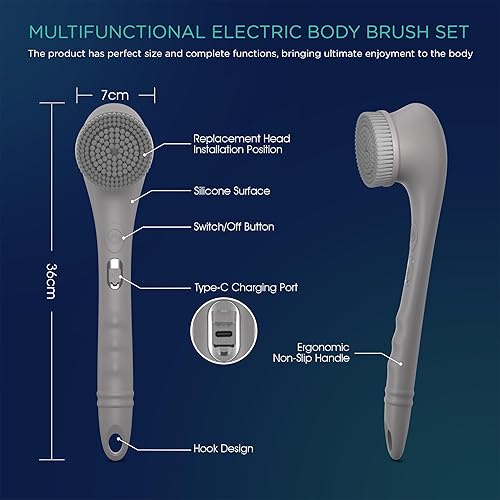 Body Cleansing Set - This body scrubber includes 4 multifunctional brush heads, meet your different body cleaning needs. If you have sensitive skin, feel free to use a soft brush. For scrubbing, choose elastic bristle brush.