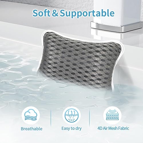 Waterproof Bath Pillow with Suction Cups for Neck & Back(Dark Grey)