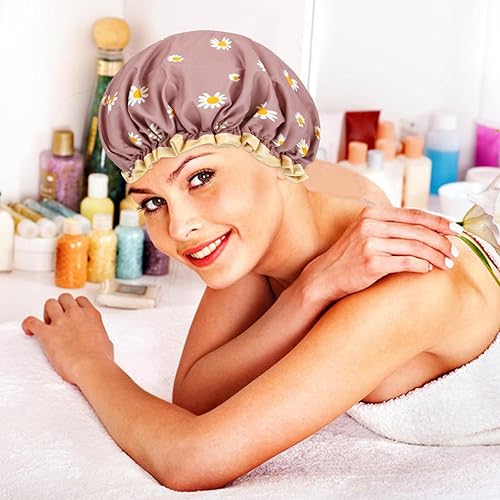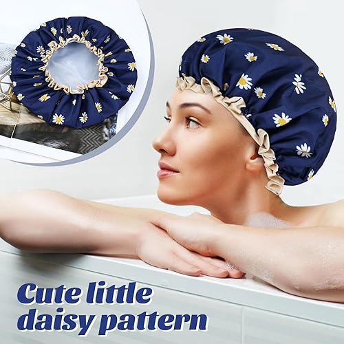 Adjustable and Comfortable Shower Caps: These shower caps for women reusable waterproof are adjustable with elastic bands, ensuring a snug fit for all head sizes. The waterproof PEVA with satin fabric lining prevents moisture, cooking smoke, and dust from your hair.