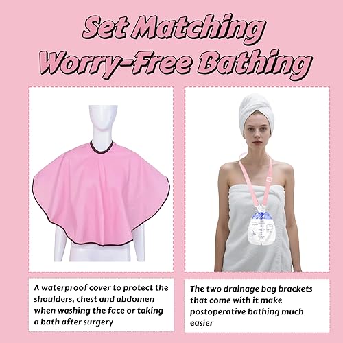 Mastectomy Shower Cover with Drain Pockets – Includes 2 drain holders and 1 bath cape to support drainage or ostomy bags, making it a caring and practical part of your mastectomy recovery supplies.