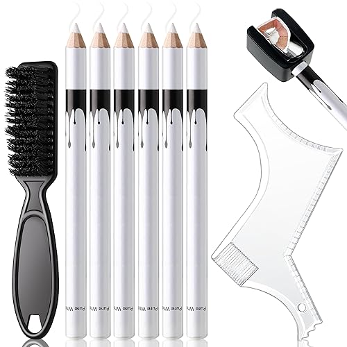 Package Includes: The set includes 6pcs white barber pencils, 1 guiding ruler, 1 brush and 1 sharpener. White color is practical, ideal for lining up. Ruler helps to define the shape and draw the line more accurate. Brush help to comb and sharpener keeps the line precisely all the time. All in one package helps to shape the beard, hairline and eyebrow easily