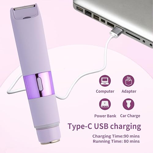 USB Fast Rechargeable - This bikini trimmer comes with a convenient USB charging cable, providing quick and easy charging. With just 1.5 hours of charging time, enjoy up to 80 minutes of cordless use. Lightweight and portable, rechargeable electric shaver easy to carry in your cosmetic bag or handbag
