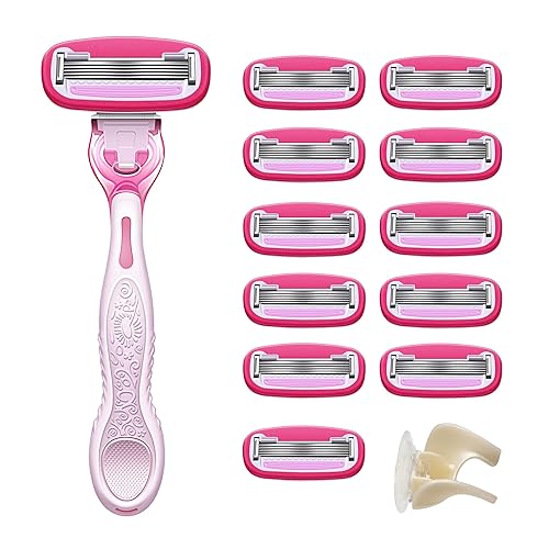 Women's 5-Blade Razor with 12 Cartridges & Shower Hanger(Pink,12 Count (Pack of 1))