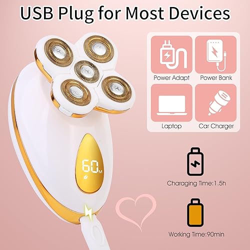 【Smart LED Display & Long-Lasting】The intelligent LED display provides real-time battery status updates, including low battery reminder and cleaning alerts. With a 90-minute runtime after a 1.5-hour USB charge, this rechargeable electric shaver for women is ideal for travel. Its long-lasting lithium-ion battery avoids mid-session interruptions, making it a top electric razor for women legs