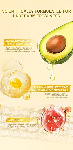 • Skin-Friendly Formula: Enriched with Shea Butter and Bisabolol to soothe, moisturize, and protect underarm skin.