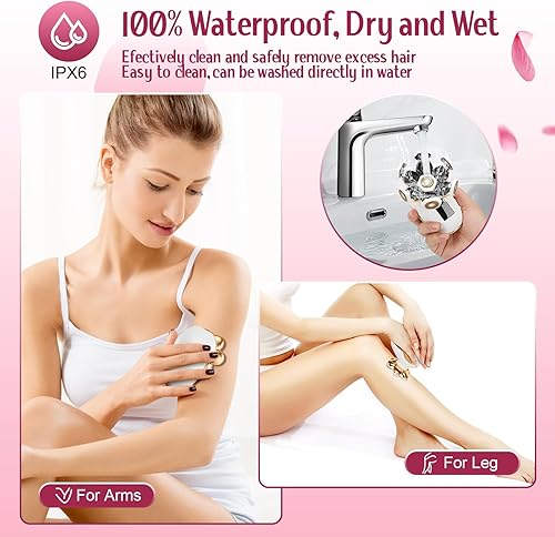 Wet & Dry Shave: The whole body of the Razor is IPX6 waterproof, can be used in wet or dry conditions! Whether you want to dry shaving or refreshing wet shaving,this hair removal for ladies can satisfy all your needs.After each use, simply rinse the shaver under water for effortless cleaning and hygiene.(No other blade accessories)
