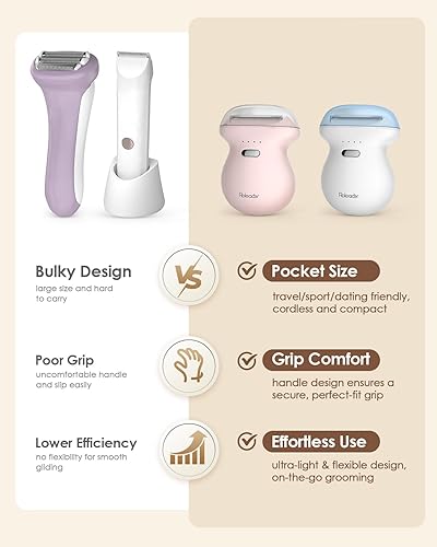 Full Body Use:Engineered for total body grooming, this electric shaver effortlessly glides over underarms, legs, arms, bikini and more. Dual-blade system guarantees enhance your shaving experience. Toss our womens travel razor in your gym bag, suitcase, or shower caddy for home, travel, or spa days – no extra tools needed