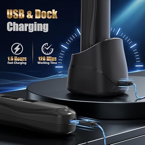 【Fast Charging with LED Display】 Stay in control with our women’s pubic hair trimmer, now featuring an upgraded LED display that clearly shows battery level and charging status. With just 1.5 hours of ultra-fast charging, enjoy up to 120 minutes of cordless runtime and weeks of standby time. For ultimate convenience, it supports flexible charging options, including both wireless dock charging (place on the USB-powered dock) or direct Type-C cable charging.