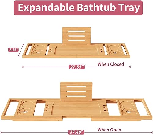 Adjustable and Sturdy Design: This versatile bath table tray is expandable from 28.5" to 41", ensuring it fits most bathtubs. No tools are needed for adjustment, and non-slip silicone grips keep the tray securely in place, making it a perfect addition to your bathing routine.