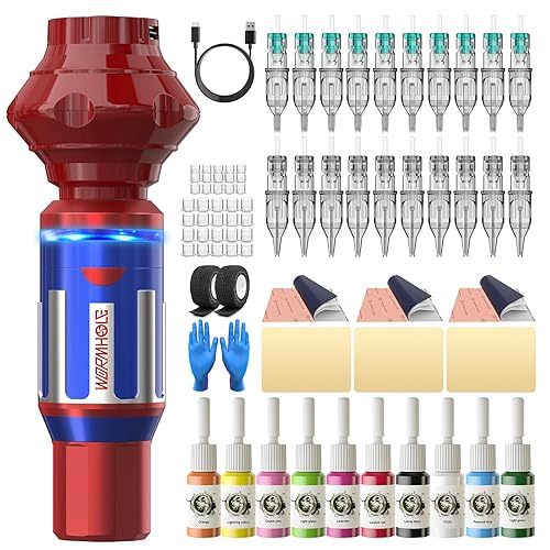 Wormhole Tattoo Kit for Beginners - Complete Pen Machine Set(Red)