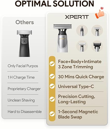 Your Gift Essential: Sleek style suits all—great gifts for couples and family. Offers a premium personal care experience for face&body hair removal. Complete set includes 1 electric shaver, 1 magnetic nose trimmer replacement head, 12-in-1 adjustable comb, 2 body combs, and 1 USB-C charging cable