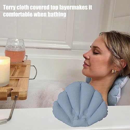 Inflatable Bath Pillow with Suction Cup | Blue PVC Tub Pillow