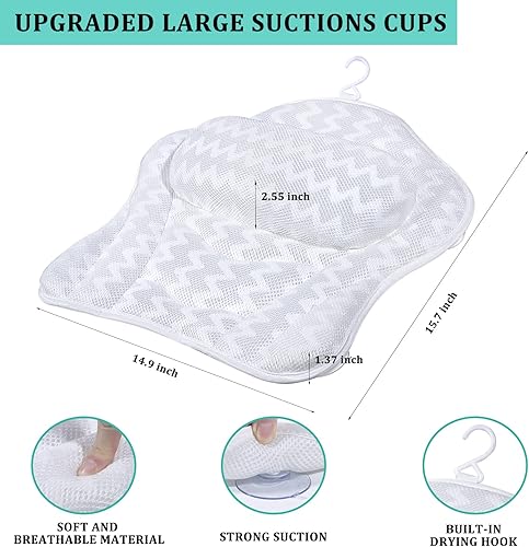 Luxury Bath Pillow with Suction Cups - 3D AirMesh Comfort