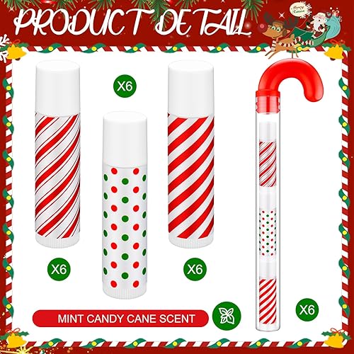 Christmas Party Supplies Bulk: this holiday lip balm set includes 18 pack lip balms inspired by Christmas candy cane. This Christmas lip balms set contains 18 individually peppermint candy themed lip balms with 6 transparent Christmas cane tube. After assembly, it is not only a practical lipstick, but also a Christmas decoration; These Mint flavored Christmas gifts add atmosphere to your theme party and promote friendship among friends