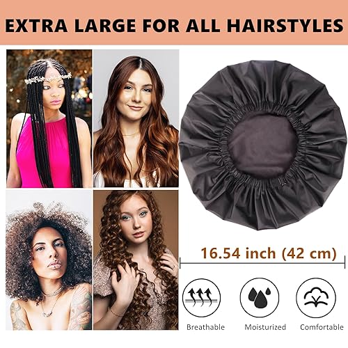 Extra Large Shower Cap for Women/Men-One Size Fits Most Hairstyles:The OD of hair shower cap is approx 16.54 inches.Roomy enough for most hairstyles like braids,natural hair,faux locs,curly hair,dreadlocks,dreads,locs,afros,weaves,rollers,bobs and up-do hairs. Protect your glorious hair with our shower caps